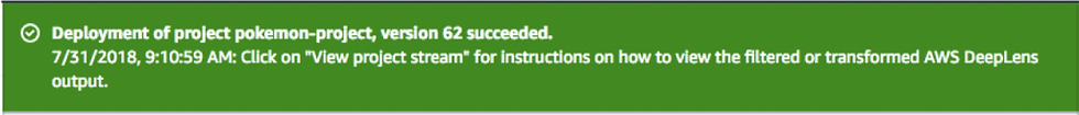 プロジェクトを作成したら、作成したプロジェクトを選択し、「Deploy to device」へ進み、プロジェクトをDeeplensにデプロイします。