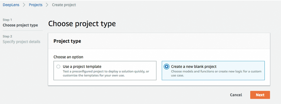 DeepLensのコンソールにいきCreate New Projectへ、
